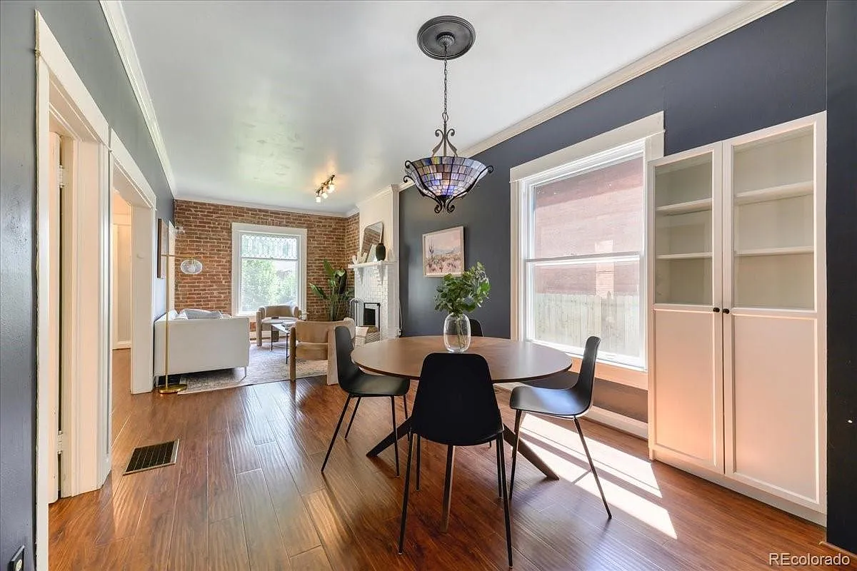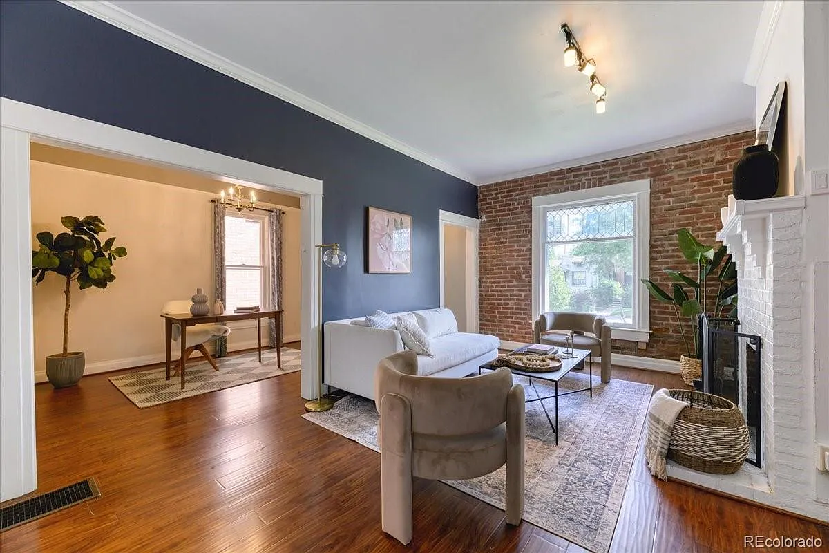 This beautifully restored 4-bedroom, 3-bath Victorian blends timeless character with modern updates in one of Denver’s most popular neighborhoods. Historic details like exposed brick, crown molding, and large windows complement a bright, spacious layout.